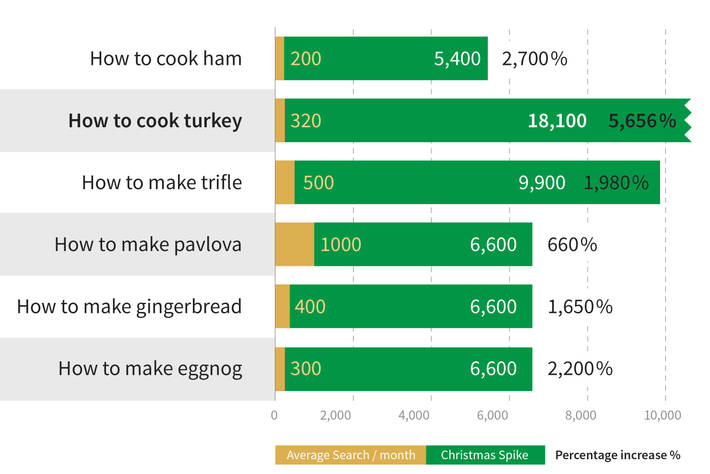 The chart below shows the percentage by which searches for different festive dishes increased during the Christmas period, compared with their average monthly searches over 12 months.