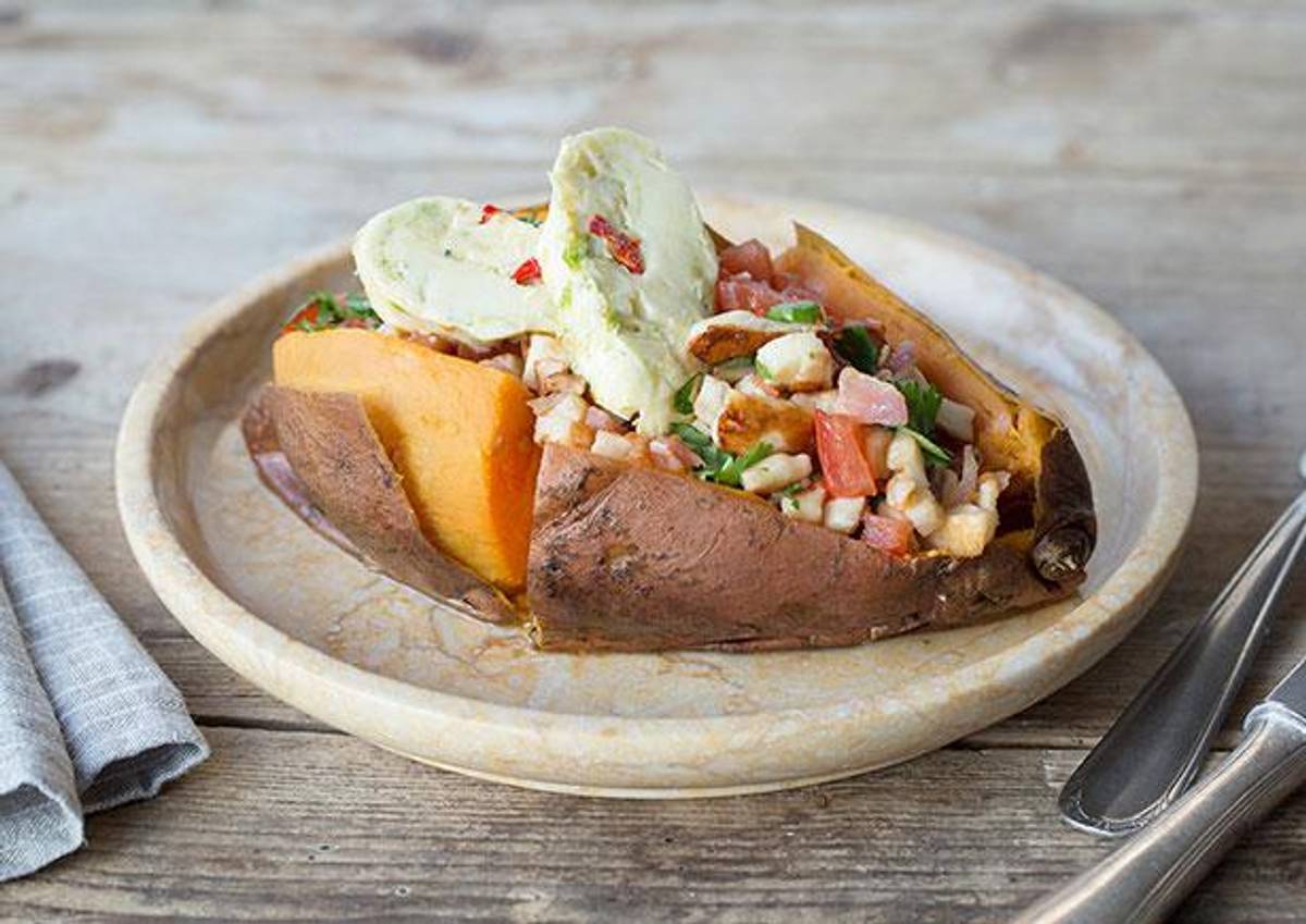 Baked Sweet Potato with Haloumi & Spiced Butter