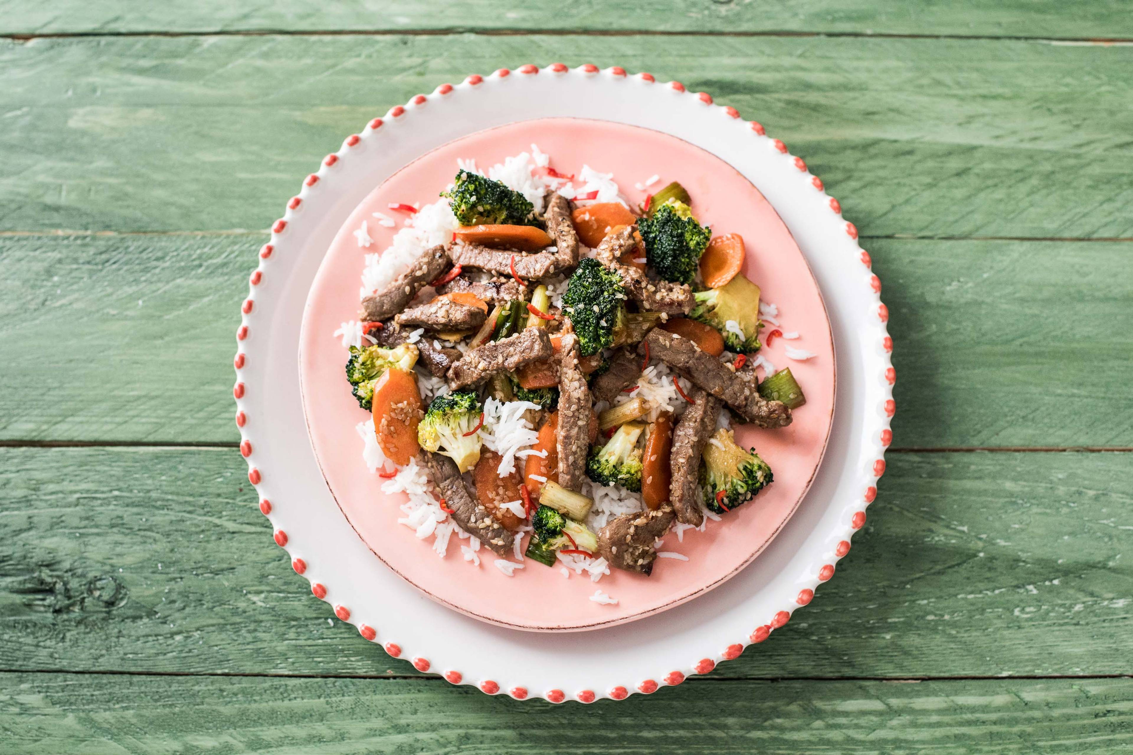 • Meanwhile, drain sweetcorn. • In a large frying pan, heat a drizzle of olive oil over medium-high heat. • Add broccoli & carrot mix and corn and cook, tossing, until softened, 5-6 minutes. • Add garlic paste and sesame oil blend (see ingredients) and cook, until fragrant 1 minute. Transfer to serving bowls, season and cover to keep warm.