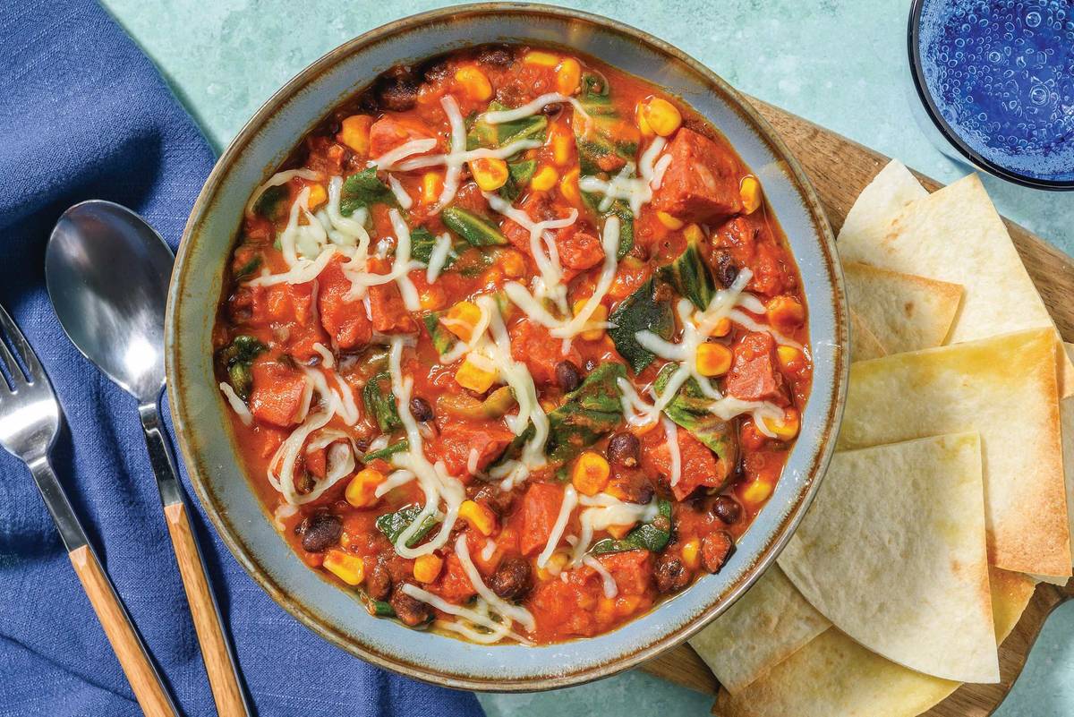 The easiest way to eat more legumes? Simmer them with vibrant tomatoes and Tex-Mex spices, then add chorizo and cheese! Scoop up the deliciousness with warm tortilla chips and you're very welcome.