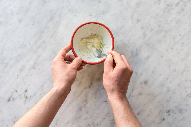 In a small bowl combine the mayonnaise and a pinch of the lime zest.