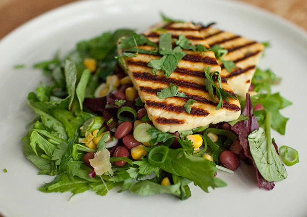 Grilled Haloumi with Corn and Coriander (v)