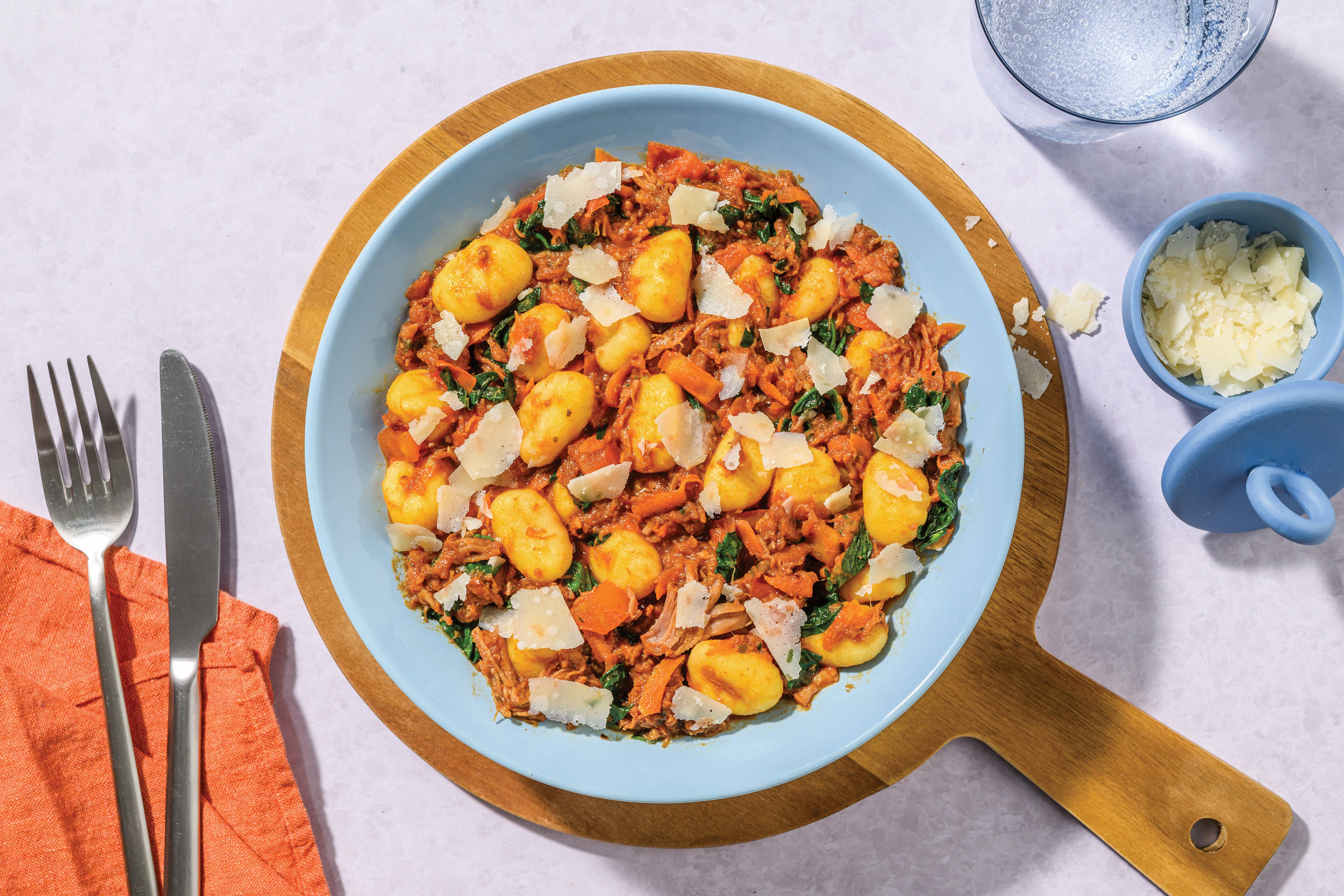- Add slow-cooked lamb shoulder (plus any liquid from packaging) and 1/4 cup of water to a baking dish. Cover tightly with foil, then roast for 22 minutes.