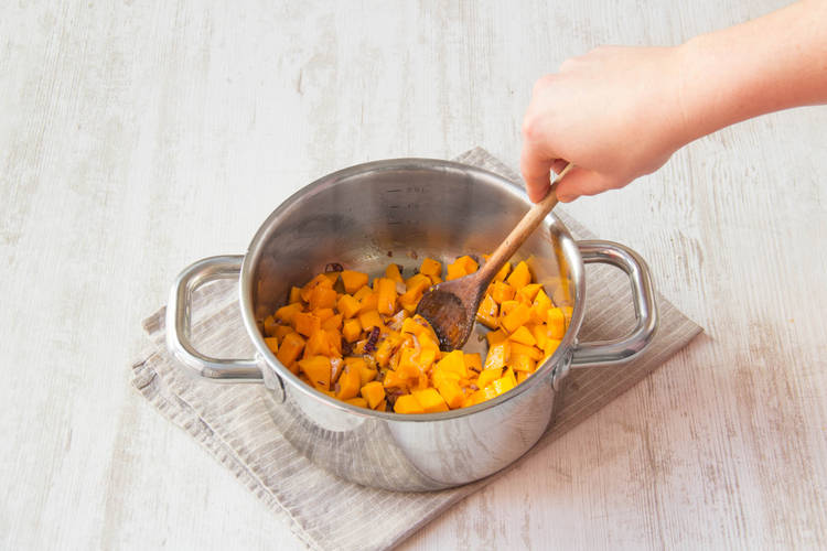 Heat the vegetable oil in a large, heavy-based saucepan over a medium-high heat. Add the onion and pumpkin. Cook, stirring occasionally, for 6 minutes or until light golden. Stir in the curry paste. Cook for 1 minute (if you are afraid of heat, add the paste a little at a time until the required taste is achieved).