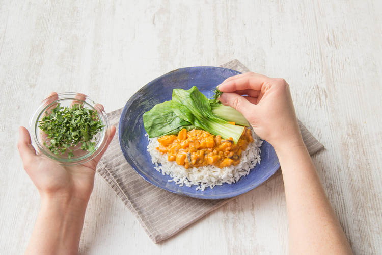 Serve your curry on a bed of rice with the bok choy, sprinkle over some coriander if you wish!