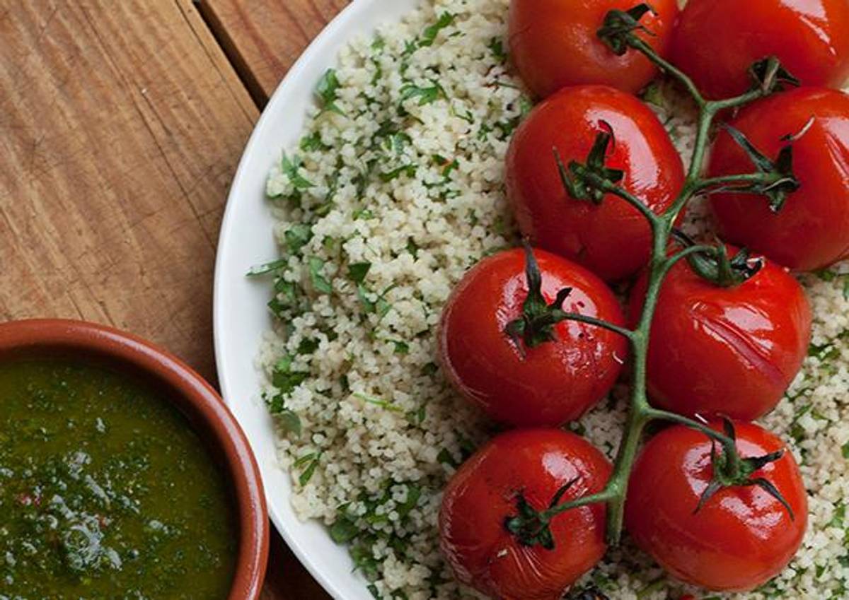 Roast Tomato with Feta and Chermoula Couscous